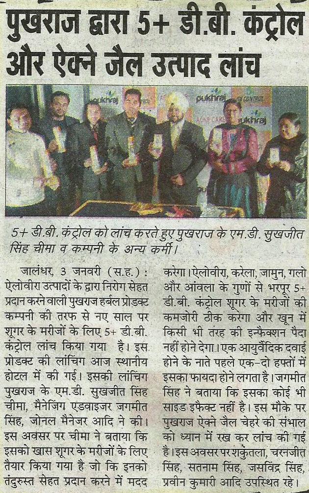 Opening of Pukhraj Health Care Outlet @ Jalandhar Bus Stand (Danik Savera 10 Jan 2014)