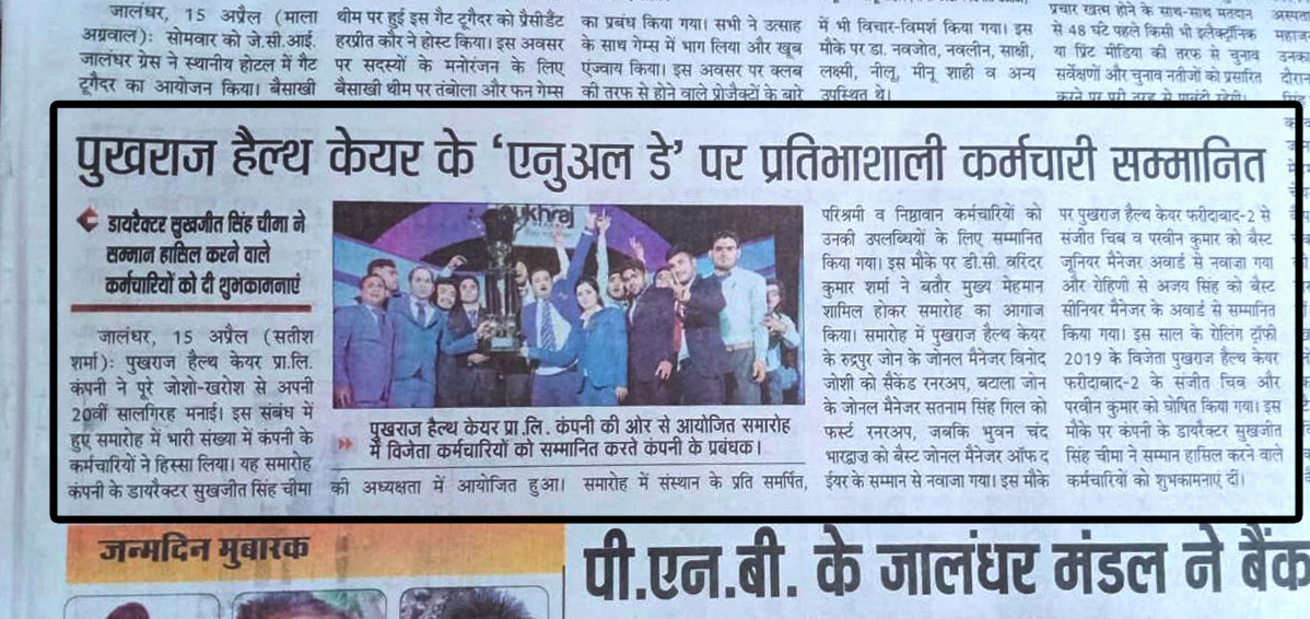 Pukhraj Health Care Annual Function-15th Mark (Danik Bhaskar, 10 Apr, 2014)